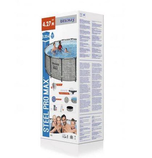 Steel Pro MAX™ Frame Pool Komplett-Set mit Filterpumpe Ø 427 x 122 cm, Steinwand-Optik
