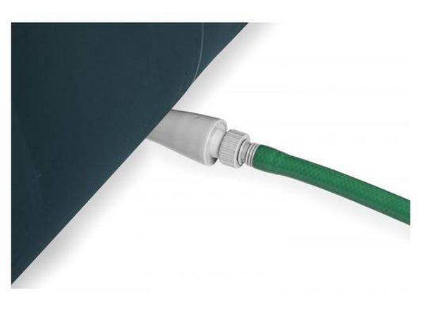 - Integriertes Ablassrohr + Gartenschlauchadapter